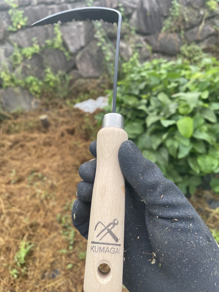 最後に、というか本日の大部分を、草刈りに費やしました。ひたすら刈って、ひたすら刈って。。と言っても草刈り機はバッテリーがもつ30分程度。その後は手作業で草刈りを進めました。今回から参加したこちらの草刈り道具!容赦なく土の中に刃を入れて根から雑草を抜いております。丈夫なのかな、でもそのはずですよね。さすがアマゾンで好評化を得ている代物。実は週末旅行先の土産物屋で購入したもの。ずっと鎌か何か、手作業で効率よく草取りができる相棒を探していたのですよね。