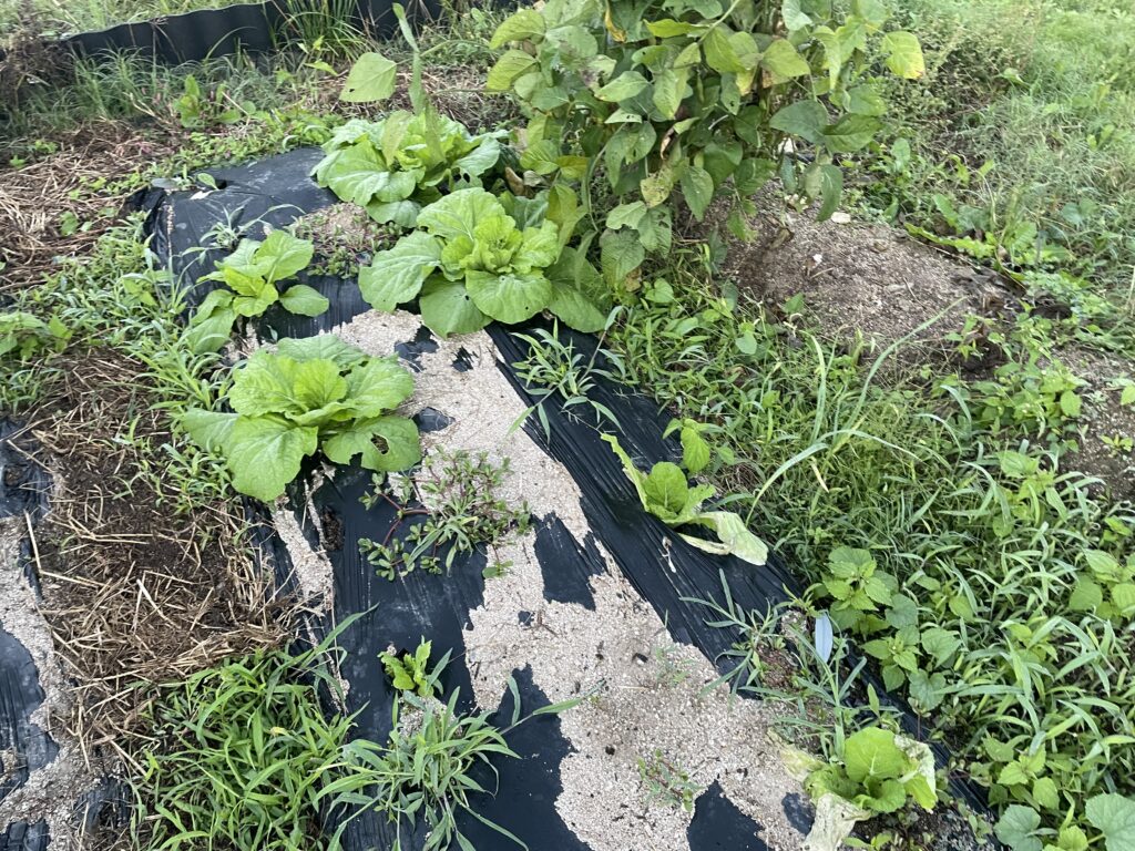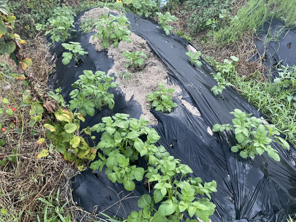 菌ちゃん農法の畝にジャガイモを植えてみましたが、順調に生育していますね。こちらはメロンを植えていた畝になります。メロン自体は小さな実を数個つけてくれました。お店で見るような大きいものではありませんでしたが、とりあえず実をつけて収穫できたところまではよかったです。来年は大きな実をつける方法をより考えてみたいです。