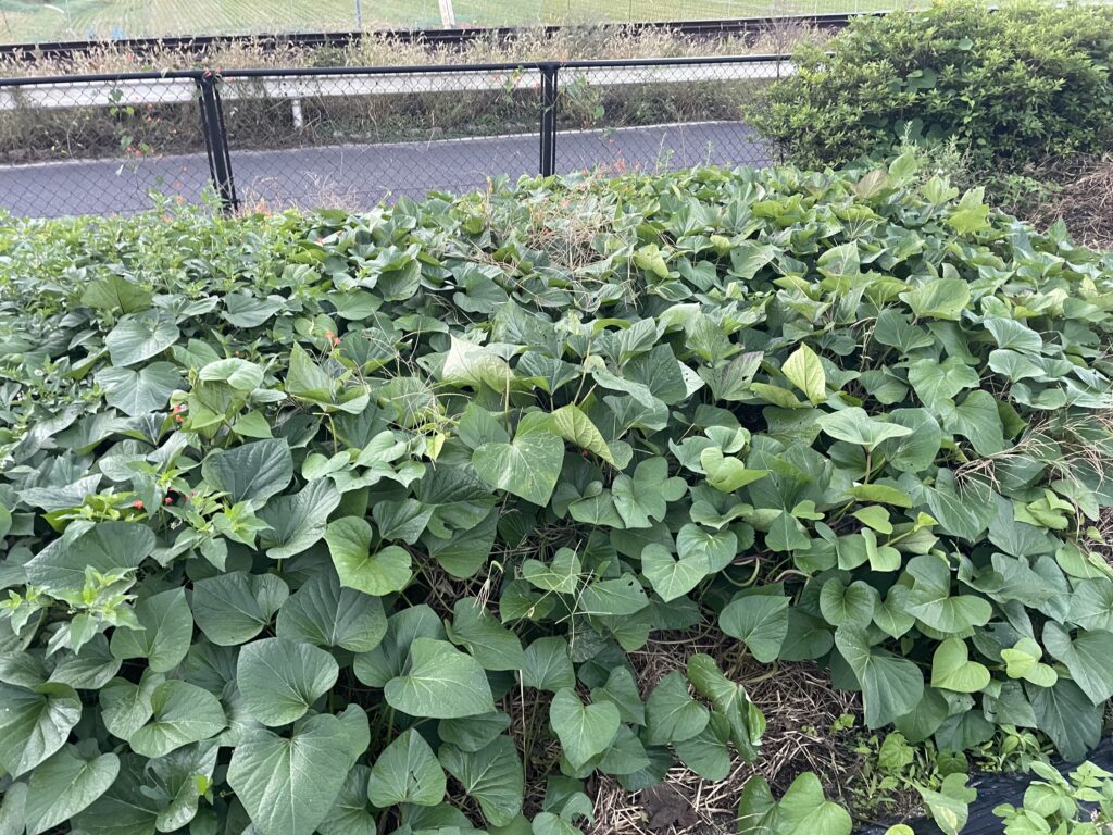 最後に、サツマイモです。9月以降に、急にツルが元気になってきたような気がします。もともと花を植えていた隣の畝、そして畑の外にまでツルが伸び始めてきました。うーん、これはどこまで伸ばすべきか。隣の畑では既に収穫が終わっていましたね。こちらでもそろそろかなぁ。思い起こせば、高い高級苗4本しか生き残らず、安くて時期が少し遅かったツルは全滅したけれども。。ツル4本でこの繁茂ぶりは何たる生命力!