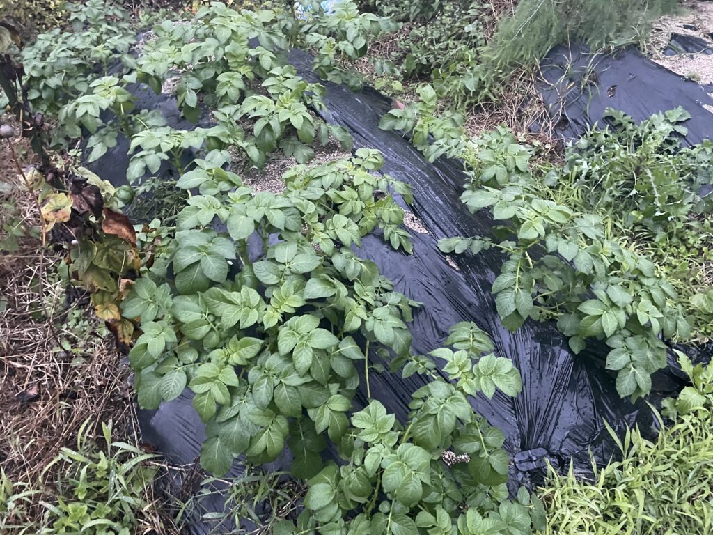 ジャガイモも良い感じですね。菌ちゃん農法の畝に、じゃがいもをぶつけてみましたが、なかなか良いです。メロンはもう一歩という感じだった畝でしたが。ジャガイモが育たなかったら本当にこの畝に幻滅してしまいそうですが。今のところは力強く育ってくれています。